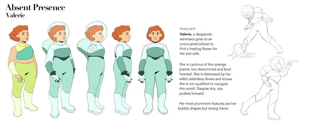 These pieces were made to align with assignments from a Yellowbrick class on animation fundamentals. The classes allowed me to revisit basics, and refine them. I used an older character, and redesigned to fit my own personal style. I plan to continue this project as a short film that really focuses on dynamic visual style, world building, and environmental storytelling.